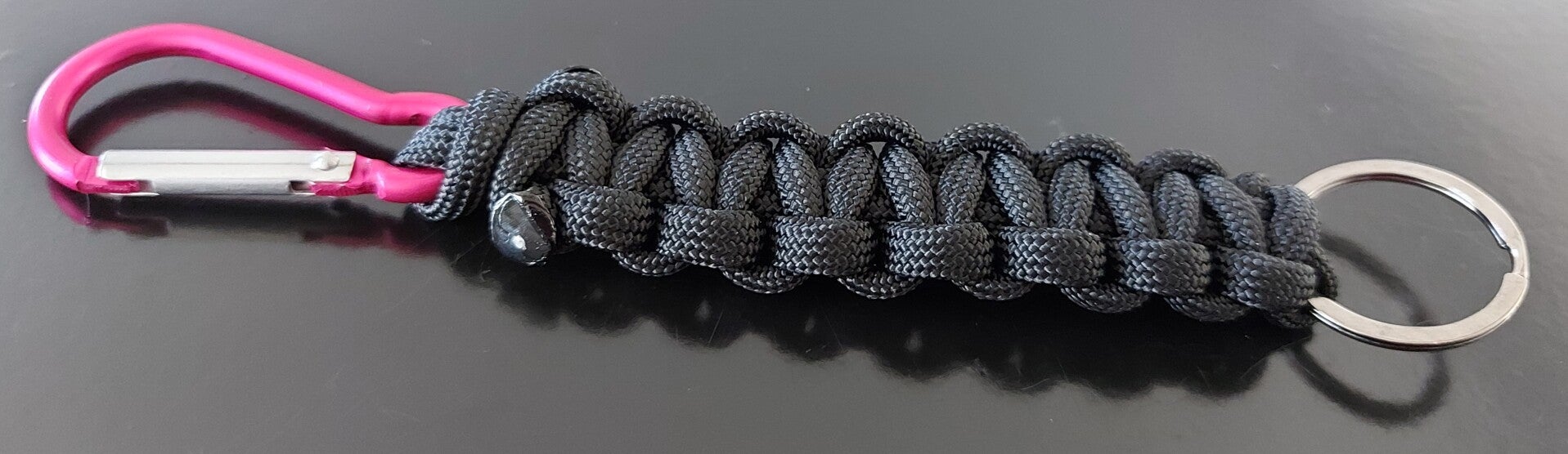 Mit Karabiner (Pink) und Schlüsselanhänger