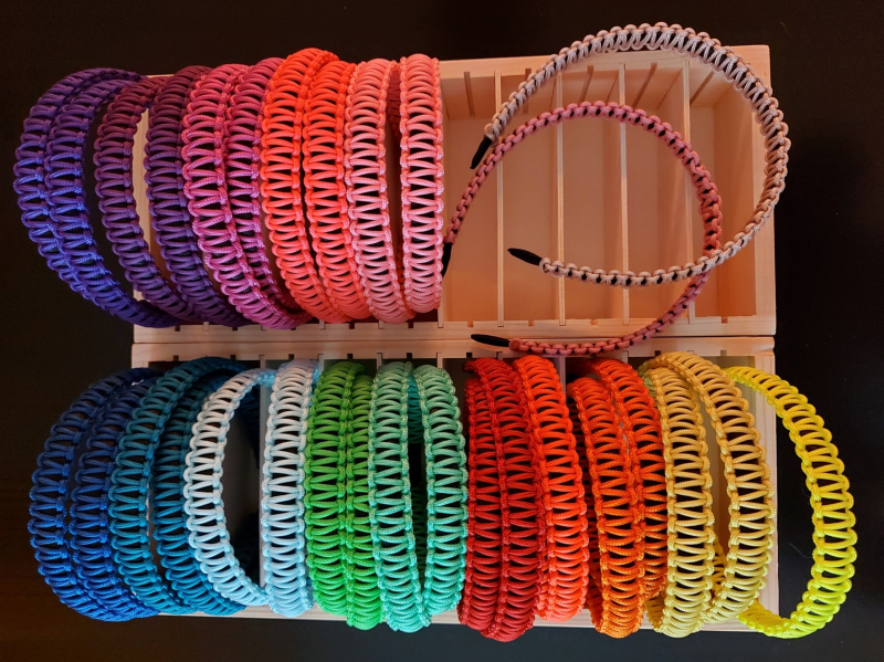 Die Haarreifen sind in Universalgrösse und passen Mädchen und auch Frauen. Der Reif unter dem geflechteten Paracordmuster ist aus Satin. Der Haarreif kann auf Wunsch in deiner Lieblingsfarbe hergestellt werden. Ein tolles Accessoire für das ganze Jahr.